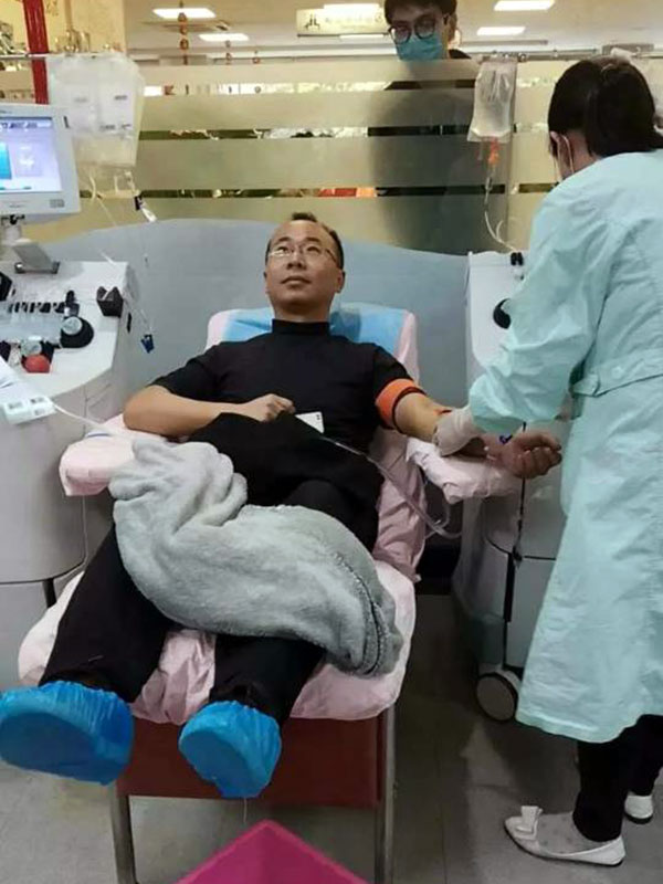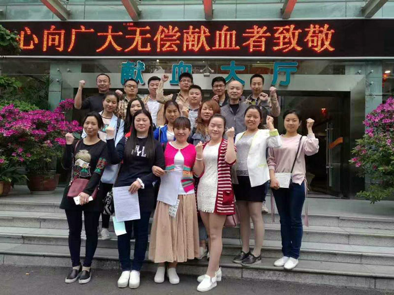 2017年4月18日四川泰華堂制藥有限公司老員工喬鐵鎖的愛(ài)人范安娜(廣漢市雒城鎮(zhèn)九小教師)突發(fā)重病,體內(nèi)血小板急劇降低,生命垂危,被送至華西醫(yī)院搶救。急需血小板的消息在公司傳開(kāi)后,在公司工會(huì)的組織下,公司職工不分男女、不分血型、不分老少,踴躍報(bào)名為她捐獻(xiàn)血小板。由于血小板的提取對(duì)身體狀況要求非常嚴(yán)格,經(jīng)初步篩選,4月20日,18位基本符合要求的同志一大早就來(lái)到成都市血液中心抽血化驗(yàn)做最后的檢查,最終有5位同志共捐獻(xiàn)了六個(gè)治療量的血小板。